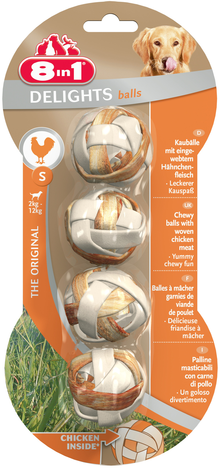 Kuleczki do żucia z mięsem z kurczaka – przysmak dla psów. Pyszne mięso z kurczaka owinięte w skórę wołową wysokiej jakości - wyjątkowe połączenie gryzaka i przysmaku.