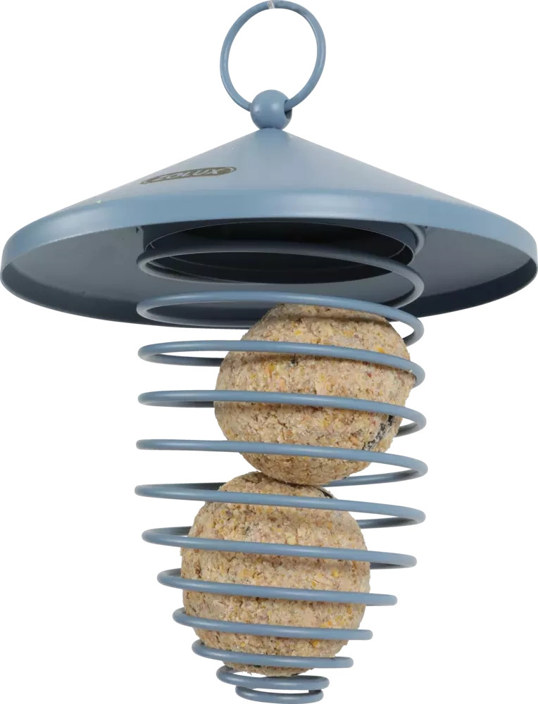 Metalowa spirala na kule tłuszczowe - solidnie wykonana do powieszenia na balkonie lub w ogrodzie. Niezastąpiona zwłaszcza w zimowe dni i wyczekiwana szczególnie przez sikorki. Dostępna w czterech kolorach: szaroniebieskim, oliwkowym, ceglastym i miodowym, w dwóch rozmiarach oraz w wersji z daszkiem.