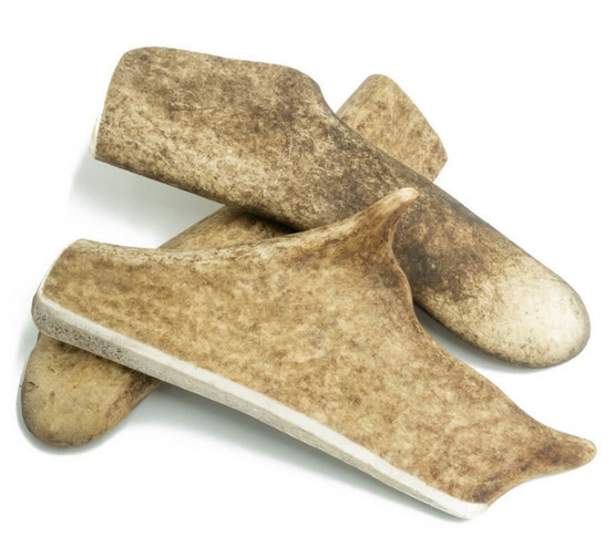Poroże jelenia jest znacznie mniej podatne na odpryskiwanie i odłamywanie niż przetworzone kości. Dzięki swojej budowie podczas żucia poroże nie pęka, nie odpryskuje, ale powoli się rozdrabnia.