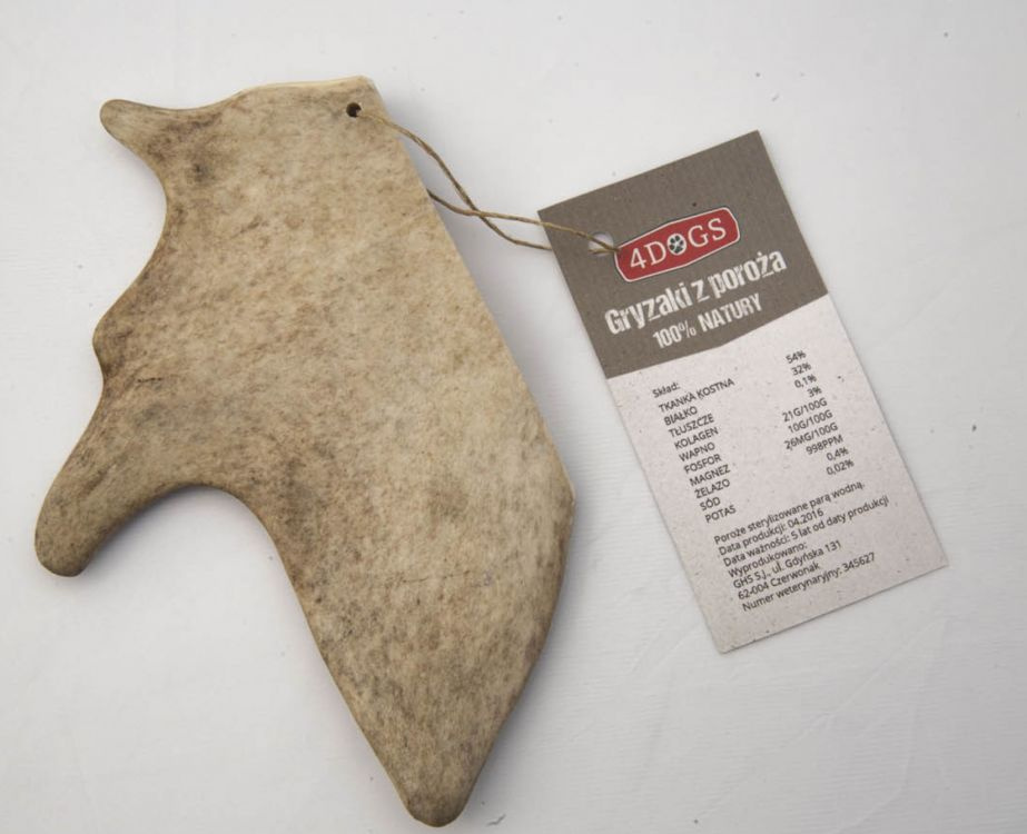 Poroże do żucia zawiera wiele pożywnych składników odżywczych i minerałów, jest bardzo bogate w wapń i kolagen. Wszystkie gryzaki z poroża są naturalne, bez konserwantów i antybiotyków. To naturalne poroże bez żadnych dodatków.