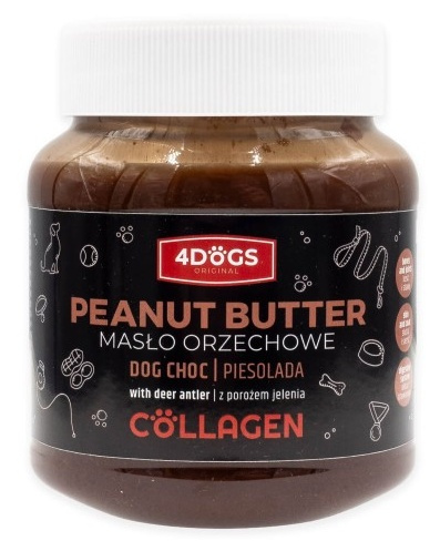 Piesolada to oczywiście nie czekolada! To pyszny i zdrowy przysmak wykonany z orzeszków ziemnych w łupinkach. Można podawać go psom w ramach zbilansowanej diety. Jest bogate w białko, zdrowe tłuszcze, błonnik i witaminy, które są niezbędne dla prawidłowego funkcjonowania organizmu psa. Ale piesolada 4DOGS to nie tylko miazga z orzeszków ziemnych! W składzie znajdziesz również 5% poroża jelenia, które jest bogatym źródłem kolagenu, białka i aminokwasów. A dodatkowo, żeby wzbogacić skład i ułatwić rozsmarowywanie, dodaliśmy do masła orzechowego 4DOGS skrobię ziemniaczaną oraz drożdże browarnicze, które są bogate w witaminy, minerały oraz wspierają układ odpornościowy i zdrowie skóry.