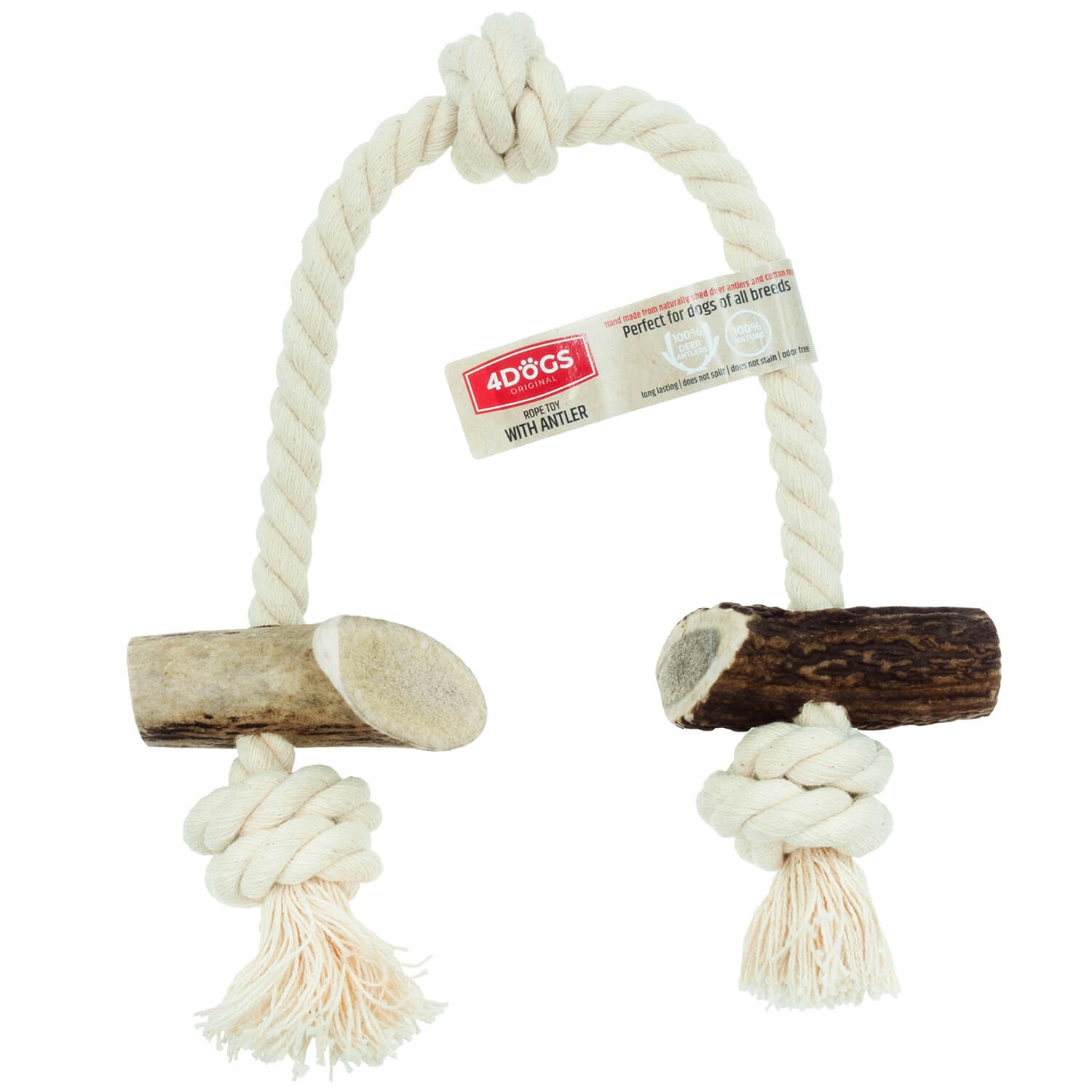 Nie jest tajemnicą, że psy uwielbiają przeciąganie liny, a idealną zabawką do tego jest klasyczna lina. Ale psy też uwielbiają żuć naturalne poroże, dlatego połączyliśmy je, aby stworzyć jedną zabawkę, którą pokochają wszystkie psy!