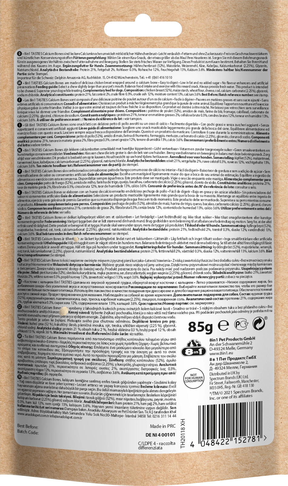 8in1 Przysmak dla psa kości z wapniem Tasties 85g