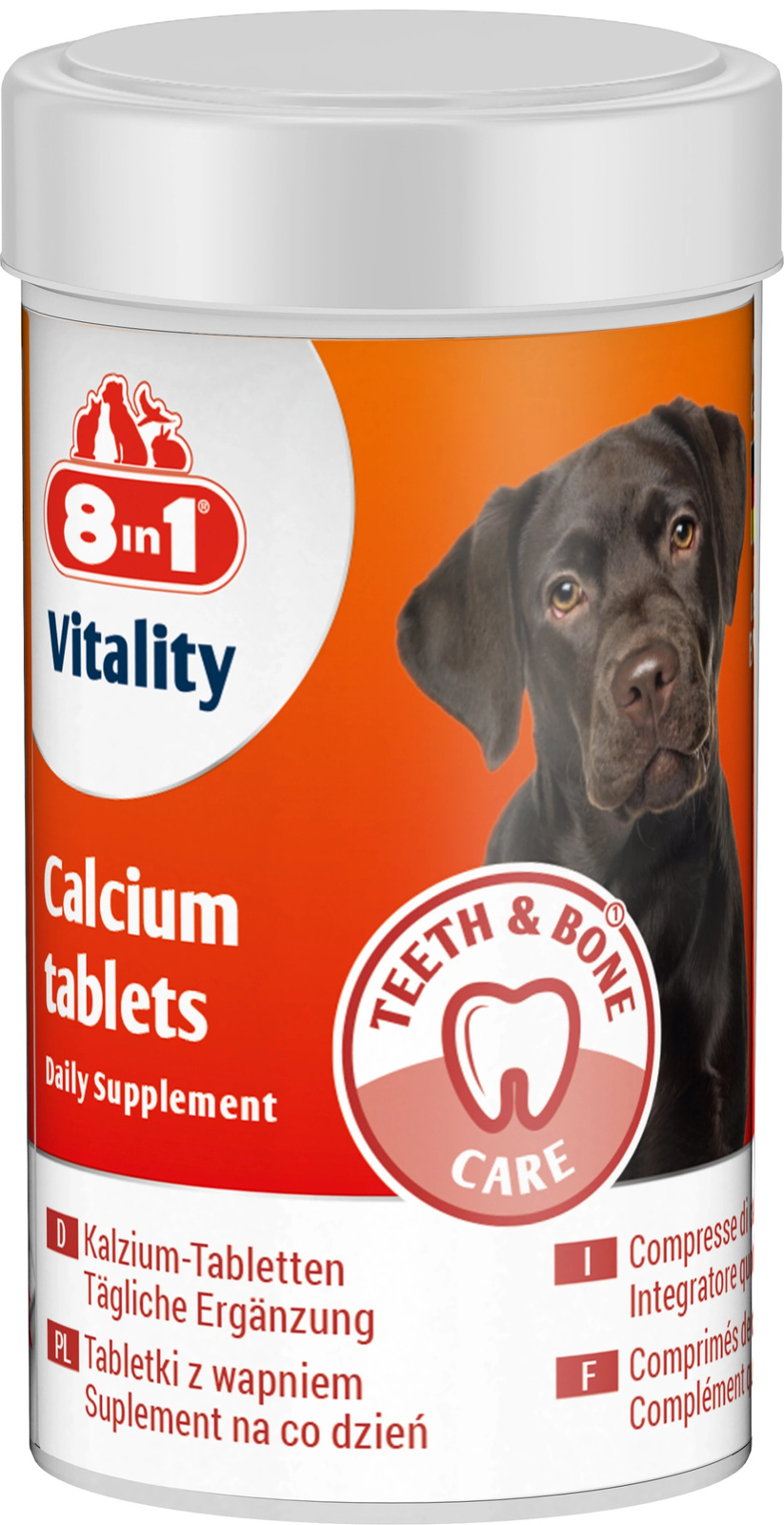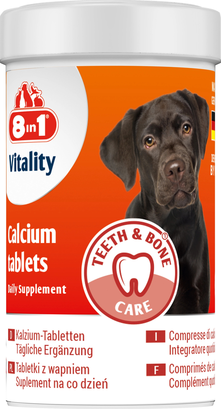 Tabletki 8in1 Wapń są przeznaczone do codziennego stosowania jako wsparcie w budowie mocnych kości i zębów. Szczególnie rekomendowane są w fazie wzrostu u szczeniąt, a także u suk ciężarnych i karmiących oraz psów aktywnych fizycznie. Witamina D3 zwiększa biodostępność wapnia, co przekłada się na lepszą mineralizację tkanki kostnej i ogólną stabilność układu szkieletowego. Suplement można stosować profilaktycznie lub wspomagająco przy niedoborach wapnia. Podawać przed karmieniem.