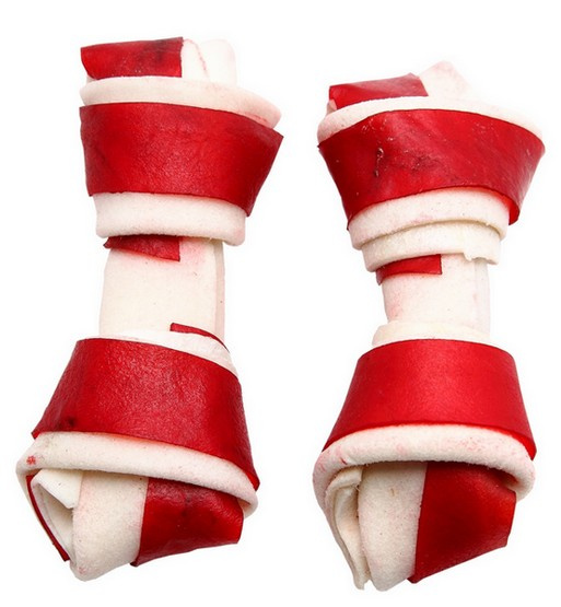 Adbi Kości wiązane biało-czerwone - wołowina 10cm 10szt [AK 27]