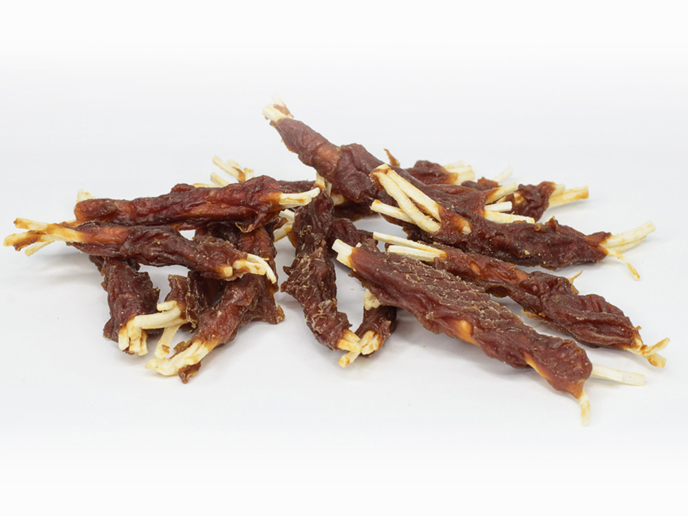 Wołowe paski z kaczką to połączenie smaku i aromatu w służbie zdrowiu. Mięso wołowe odpowiada za dostarczenie odpowiedniej ilości kolagenu, natomiast kaczka rewelacyjnie wpływa na poprawę psiej odporności. Lekkostrawna przekąska pomaga zaspokoić naturalną potrzebę gryzienia, dodatkowo oczyszczając zęby i wzmacniając dziąsła.