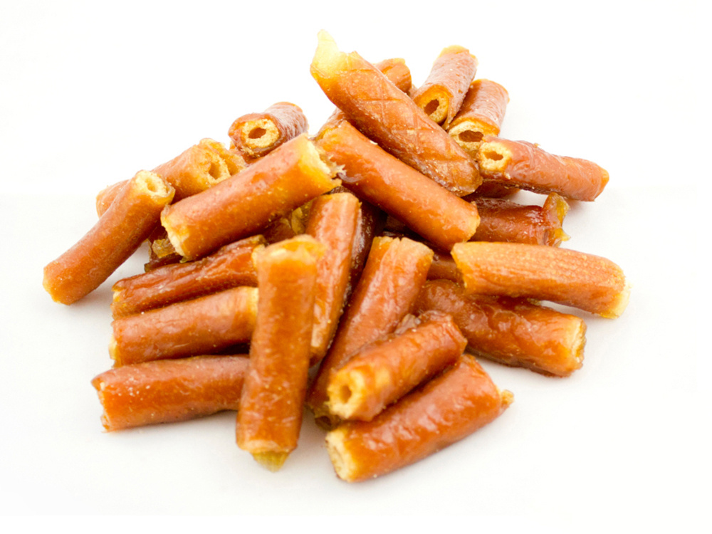 OPIS PRODUKTU Rurka ryżowa z kurczakiem, smaczna i zdrowa propozycja nawet dla psów, u których występują problemy związane z układem pokarmowym. Lekkostrawna, o obniżonej zawartości tłuszczu przekąska, stanowi doskonałe uzupełnienie każdej psiej diety. Idealna do gryzienia, które jest podstawową aktywnością każdego czworonoga. Zadbaj o właściwe oczyszczanie zębów! Skład: Kurczak, ryż, gliceryna, sorbitol, naturalne barwniki. Cechy jakościowe: Białka (38%), włókno surowe (1%), tłuszcze (1%), błonnik (3,5%), wilgotność (14%). Instrukcja karmienia: Podawać jako okazjonalny posiłek. Zapewnić zwierzęciu dostęp do świeżej wody. Przechowywać w temperaturze poniżej 20°C i wilgotności względnej poniżej 60%. Unikać bezpośredniego światła słonecznego. Po otwarciu zamknąć jak szybko to możliwe. Nie do spożycia przez ludzi. Waga: 500g WAGA 0,5 kg RODZAJ MIĘSA Kurczak, Ryż WIELKOŚĆ OPAKOWANIA 500g