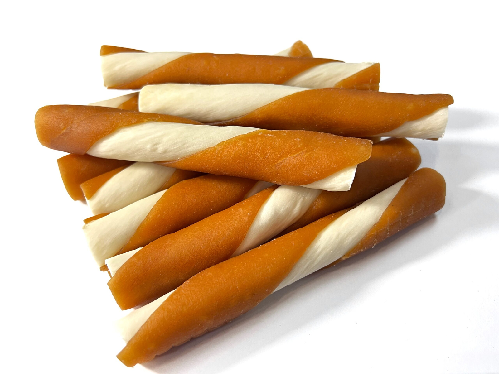 Pałka kolagenowa z mięsem z piersi kurczaka, to doskonałe połączenie dla zdrowia Twojego pupila. Wybieraj dla swojego psa wyłącznie zdrowe przekąski, które pomogą Ci wspierać jego kondycję i doskonałe zdrowie mięśni, ścięgien, stawów. Smaczne i aromatyczne pałki o długości 12 cm nie zawierają glutenu. Idealne do urozmaicenia diety.