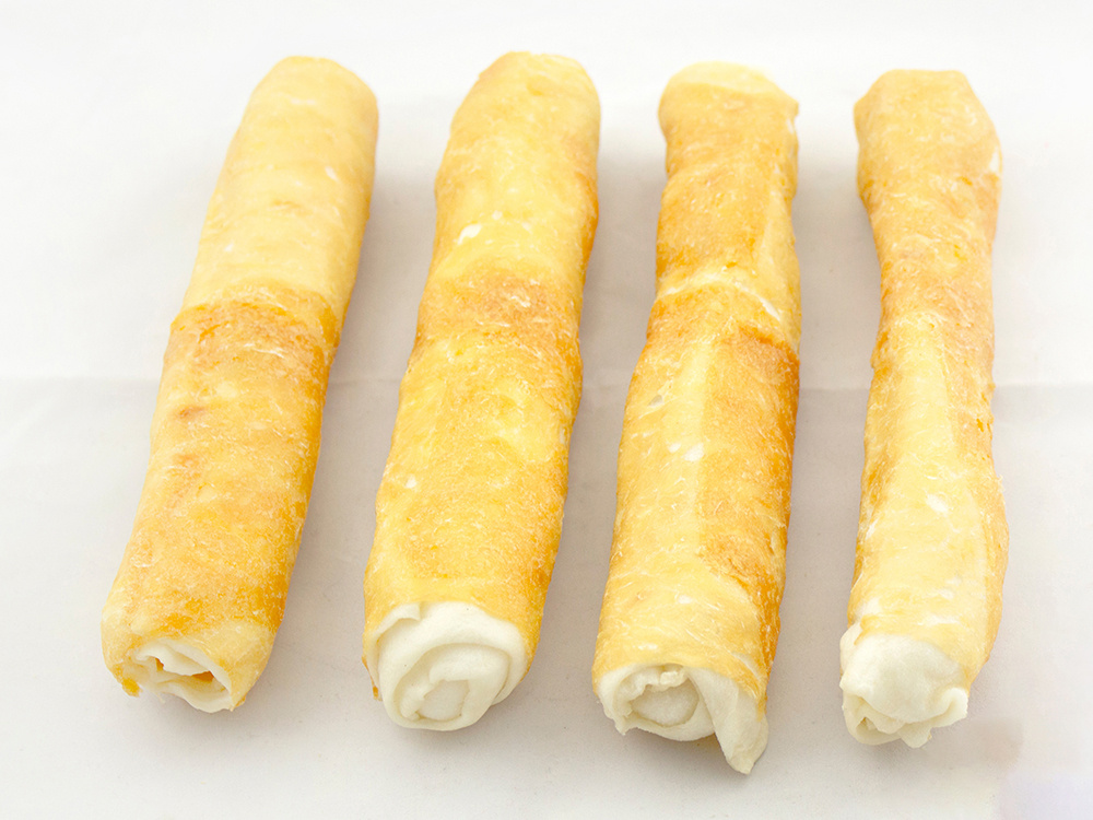 Skład: skóra wołowa (78%), pierś z kurczaka (18%), skrobia.