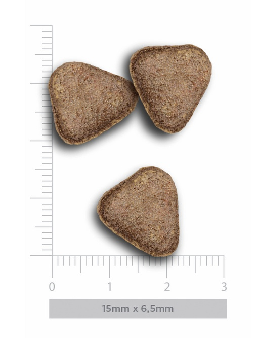 białko surowe 26,00%, tłuszcz surowy 16,00%, kwasy tłuszczowe omega-3 0,60%, kwasy tłuszczowe omega-6 1,20%, włókno surowe 4,00%, popiół surowy 7,50%, wapń 1,20%, fosfor 0,90%, energia metaboliczna 3 730 kcal/kg.
