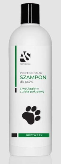 • Profesjonalny szampon dla psów AS PROFESSIONAL odżywczy POKRZYWOWY z wyciągiem z ziela pokrzywy.