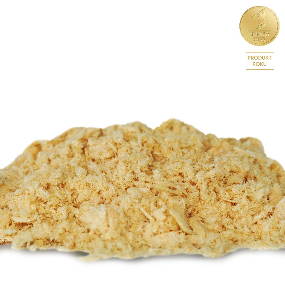 Liofilizowany filet z piersi kurczaka w wersji zmielonej czyli dosmaczacz, aby Twój kot zjadł z apetytem to co na co akurat ma mniejszą ochotę. A na pewno przekona się do jego smaku, bo to przysmak który podbija podniebienia nawet najbardziej wyrafinowanych, kocich koneserów!