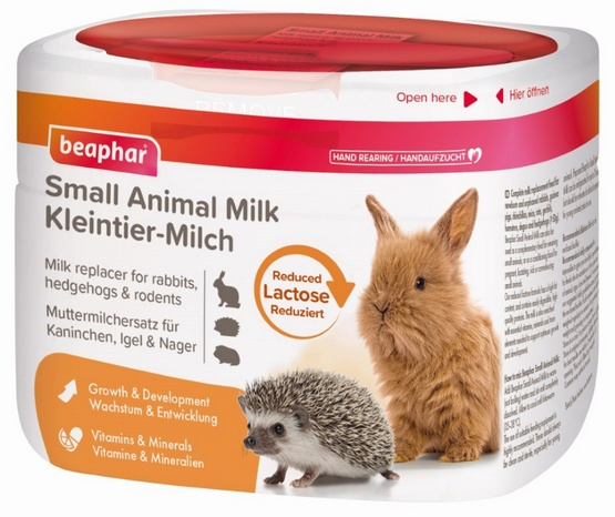 Kompletny pokarm mlekozastępczy dla nowonarodzonych i osieroconych królików, świnek morskich, szynszyli, myszy, szczurów, myszoskoczków, chomików, koszatniczek i jeży (> 50 g).