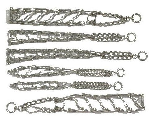 Popularna obroża typu "kolczatka", o budowie łańcuszka, którego ogniwa zakończone są wystającymi, tępo zakończonymi końcami drutu.