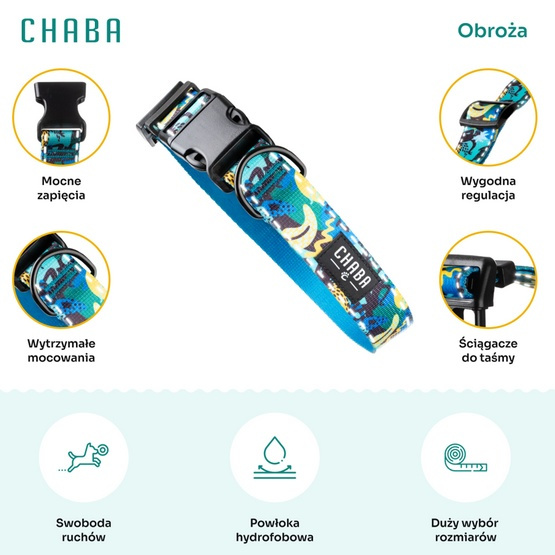- Chaba obroża Story III regulowana Odkryj serię regulowanych obroży Story od Chaba, które łączą funkcjonalność i design. Wybierz spośród 4 wzorów - Aussie, Lakota, Jumbo oraz Carnival z odblaskiem ...