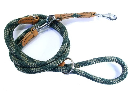 Ręcznie szyta smycz wykonana z linki ze skórzanymi końcówkami