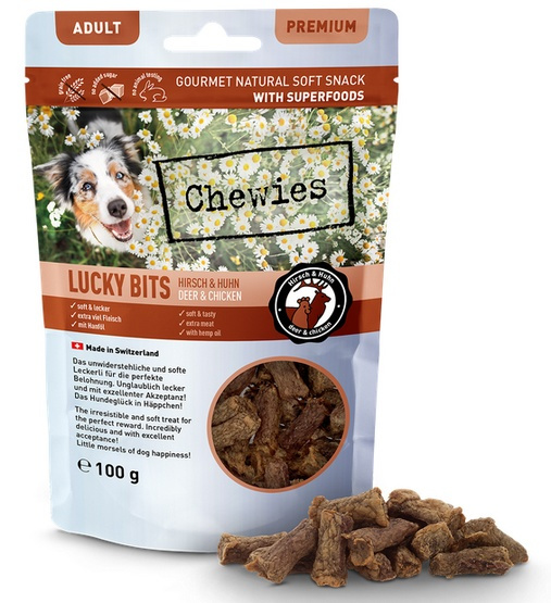 W Chewies LUCKY BITS nie znajdziesz żadnych zbóż ani dodatku cukru. Są produkowane w Szwajcarii - oczywiście bez inżynierii genetycznej i testów na zwierzętach.