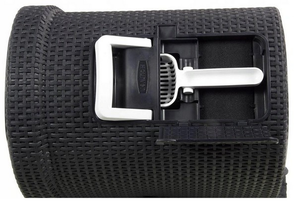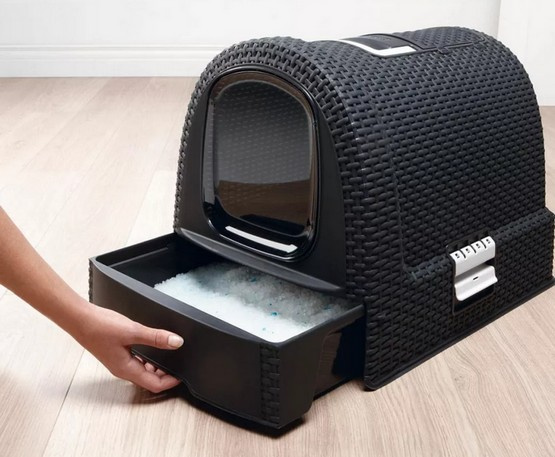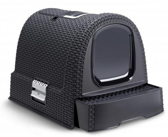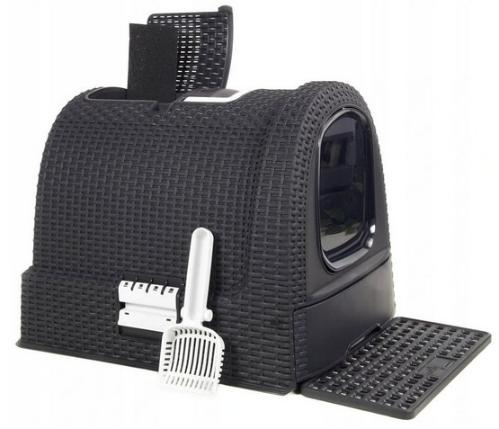 Estetyczna, przypominająca rattanowy kosz kuweta dla kota z wysuwaną szufladą i schowkiem na akcesoria (łopatka i mata czyszcząca łapki w zestawie), niezwykle łatwa w montażu i czyszczeniu. Kuweta posiada szczelne zatrzaski ograniczające wysypywanie się żwirku i filtr przeciwzapachowy, dla zwiększonego komfortu użytkowania. Jej obudowa, wyposażona w uchwyt, jest łatwa do przenoszenia.
