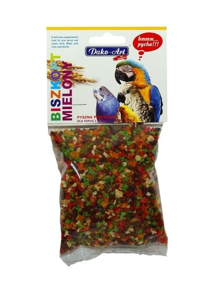 Dako-Art atrakcyjny smakowo przysmak dla ptaków, którego głównym składnikiem jest biszkopt mielony o smaku owoców, uwielbiany przez naszych pupili.