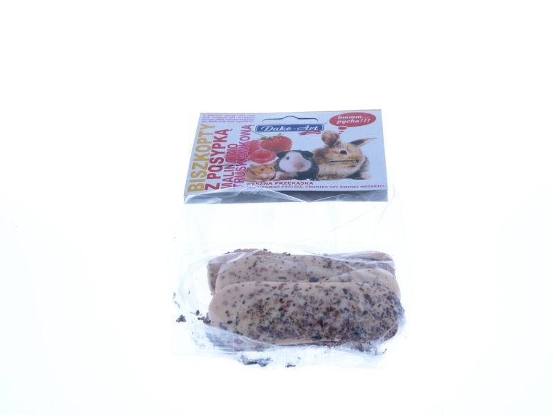Biszkopty dla gryzoni DAKO-ART o smaku malinowo-truskawkowym to przysmak będący uzupełnieniem codziennej diety Twojego zwierzaka. Gryzonie uwielbiają smak biszkoptów, a odpowiednio dobrana twardość produktu sprawia, że podczas posiłku ścierają siekacze, co jest bardzo istotne dla zdrowia i dobrego samopoczucia gryzonia.