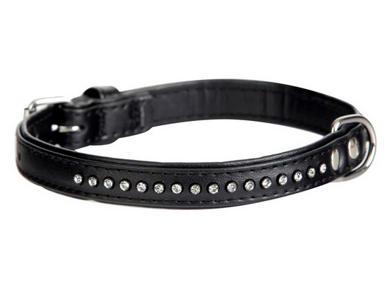 Obroża dla psa z linii Glamour została wykonana z wysokiej jakości materiału skóropodobnego i jest ozdobiona kryształkami renomowanej firmy Jablonex.
