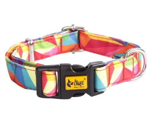 Regulowane obroże dla psa AMERICA są wykonane z drukowanego wodoodpornego materiału. Wielokolorowe obroże w modne i wyraziste wzory są odporne na ścieranie. Obroża została wyposażona w wygodne i solidne zapięcie typu klik-klak, które jest wykonane z wysokiej jakości, odpornego na trudną pogodę plastiku. Do zapięcia smyczy służy metalowe kółko, które zostało pokryte chromem. Dzięki temu po kontakcie z wodą nie zardzewieje.