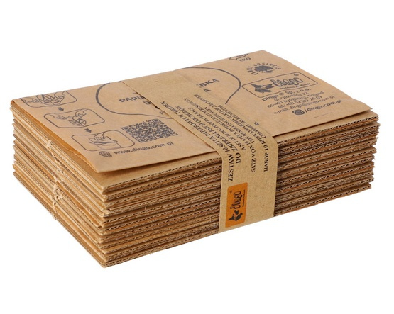 Opakowanie zawiera 10 sztuk ekologicznych torebek, które zostały wykonane z papieru i tektury. Dla większej wytrzymałości papieru został on pokryty woskiem - dzięki temu wolniej i mniej nasiąka, aby nie narażać torebki na przerwanie.