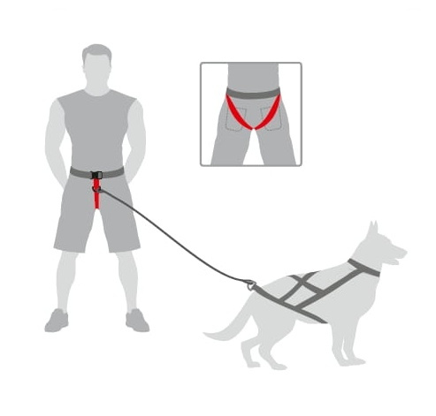 Ten wyjątkowo wytrzymały produkt został wyposażony w szeroki pas rozkładający siłę podczas biegu oraz wygodne szelki na pośladkach odciążające odcinek lędźwiowy biegacza podczas szarpnięć i ciągnięcia psa. Jest to nieocenione rozwiązanie przy długodystansowych biegach i w towarzystwie silnych psów.