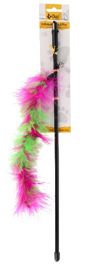 Dingo Wędka dla kota - ogonek z piór różowo-zielony