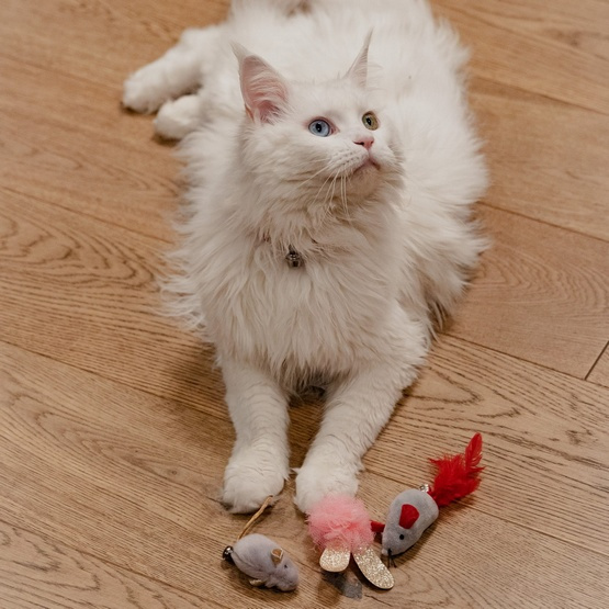 Myszki z piórkami LOVE pobudzą instynkt łowiecki, a tym samym pomogą w rozwoju umiejętności, zwinności i zmysłów Twojego kota.