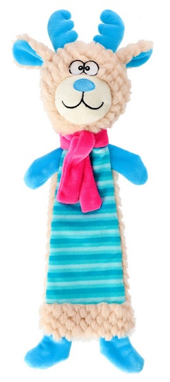 Zabawka dla psa renifer jest mięciutka i przyjemna w dotyku. Spełni swoje zadanie zarówno podczas wspólnej zabawy z psiakiem, jak i w trakcie jego samodzielnej zabawy, a to za sprawą piszczałki i szeleszczącego materiału umieszonych w środku.