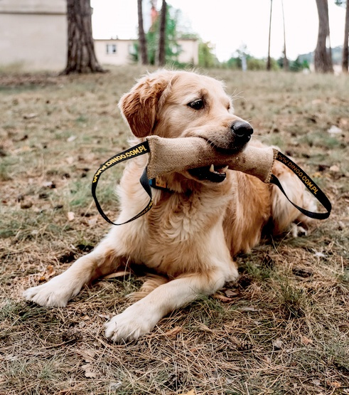 Podczas treningów z szarpakiem pies uczy się odpowiedniego gryzienia i rozładowuje emocje.