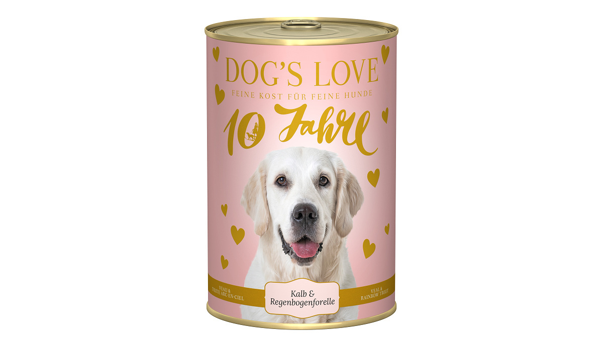 • Jubileuszowa, limitowana edycja karmy z okazji 10-lecia marki DOG'S LOVE. Połączenie cielęciny i pstrąga tęczowego zapewnia psom wyjątkowe doznania smakowe
