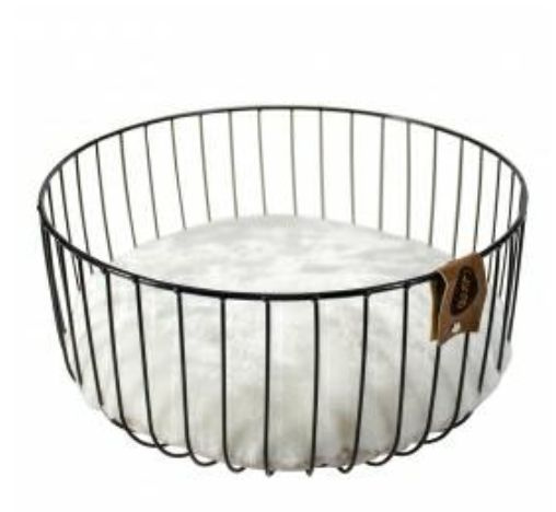 Ten mocny, czarny kosz Duvo + Siesta wykonany jest z metalowego drutu i jest modnym miejscem na odpoczynek. Kosz ma wygodną poduszkę dla większego komfortu i ciepła, która z jednej strony jest przykryta lnem, az drugiej miękkim, długim futerkiem. Współczesny design świetnie prezentuje się w każdym domu i jest idealnym miejscem dla Twojego kota, aby drzemał w komforcie.