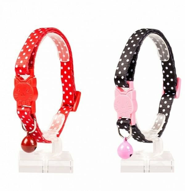 DUVO+ OBROŻA KOT W KROPKI Z DZWONKIEM 20-30cm/ 10mm CZERW/CZARNA 11166