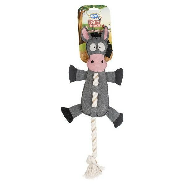 Asortyment Duvo+ Farm Friends obejmuje wyjątkowy, zabawny wybór zabawek dla psów wykonanych z wysokiej jakości tkaniny konopnej i poliestru. Te realistyczne zwierzęta pochodzą prosto z farmy i będą stymulować instynkt myśliwski Twojego psa. Dzięki piszczałce w środku Twój pies nie będzie miał dość tych śmiesznych zabawek. Zabawka zawiera również bawełnianą linę. Żucie sznura pomaga zachować zdrowe zęby i dziąsła psa.