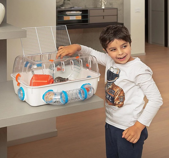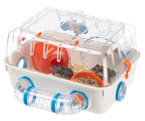 - Ferplast Combi 1 dla chomika Wymiary : 40,5 x 29,5 x h 26 cm szaro-przezroczysta Dołączone wyposażenie klatki: domek, kołoworotek, tunel, miska Combi 1 to klatka dla chomika, która jest wykonana z...