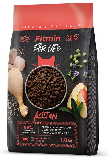 - FITMIN FOR LIFE CAT KITTEN Pełnoporcjowa karma dla kociąt do 12 miesiąca życia oraz dla ciężarnych i karmiących kotek. Prebiotyki - wyciąg z korzenia cykorii o wysokiej zawartości insuliny działa...