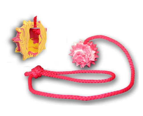 - Fixi Piłka nr1 mała z kolcami aportowa Idealna do aportowania Ze sznurkiem Średnica 6 cm Waga 70 g Różne kolory (wysyłamy losowo)