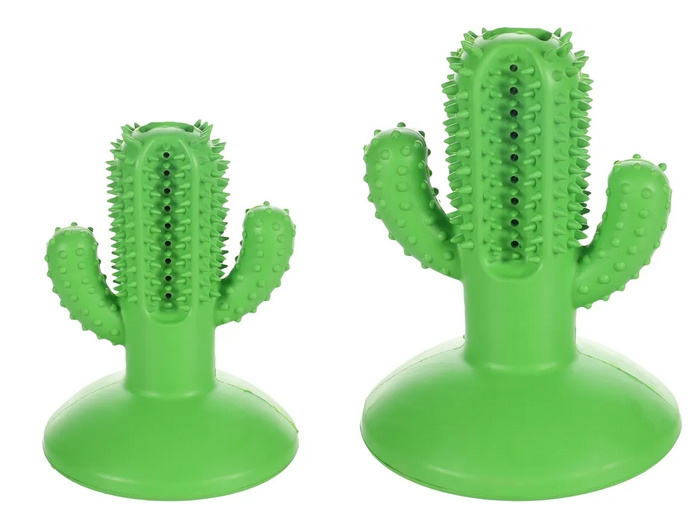 Flamingo Gumowy kaktus Dental MediumGumowy kaktus Dental to zabawka do lizania, ktandoacute;ra calkowicie pochlonie uwage Twego pupila!Rozsmaruj pomiedzy kolcami przysmak w formie pasty i przyklej do podlogi na przyssawke.Lizanie stymuluje produkcje sliny i sprzyja utrzymaniu ukladu pokarmowego w dobrej kondycji.Zabawka zapobiega powstawaniu plytki nazebnej i masuje dziasla.Mozna myc w zmywarce.Wymiary: 9,5 x 9,5 x 12,5 cm