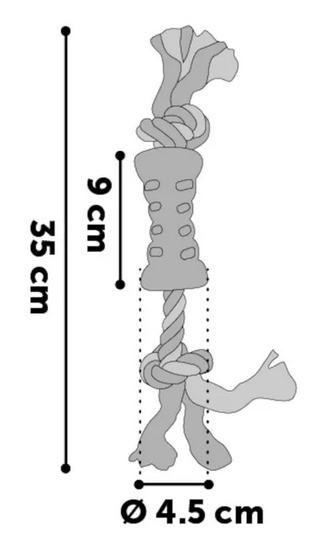 - Zabawki posiadają wypustki oraz węzły, które przy gryzieniu masują dziąsła psa i zapobiegają osadzaniu się kamienia nazębnego.