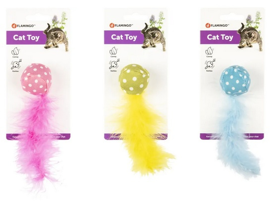 - Flamingo Piłeczka z piórkiem Kolor mix - wysyłamy losowo. Zabawka dla kota Twarda piłeczka w kropki i miękki piórkowy ogonek! Bardzo lekka i idealna do kociej gonitwy! Zawiera grzechotkę! Wymiary:...