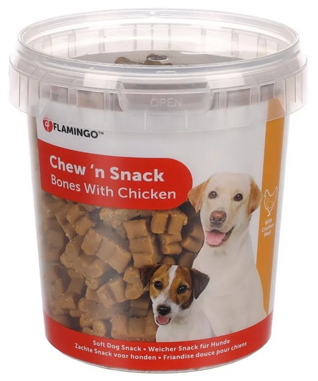 - Flamingo przysmak dla psa Kosteczki z kurczakiem. Idealne jako nagroda lub przekąska Skład: zboża, produkty pochodzenia roślinnego, oleje i tłuszcze, mięso i produkty pochodzenia zwierzęcego (4%...