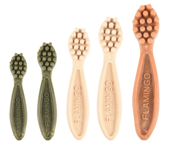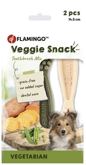 - Flamingo Veggie gryzaki dla psa Gryzaki w kształcie szczoteczki Idealne jako nagroda lub przekąska Długość 14,5 cm Skład: skrobia ze słodkich ziemniaków, mąka grochowa, gliceryna, węglan wapnia,...