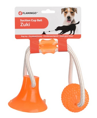 Flamingo Zuki Szarpak z przyssawka - pilkaTa zabawka z przyssawka zapewni Twojemu psu zajecie gdy zostanie sam.andnbsp;Wystarczy, ze przykleisz przyssawke do podlogi. Zabawka jest wyposazona w mocna line zakonczona pilka, za ktandoacute;ra pies moze ciagnac. Przeciaganie jest jedna z ulubionych zabaw wiekszosci psandoacute;w.Flamingo Zuki moze sluzyc takze do aportowania. Wytrzymale tworzywo TPR sprawia, ze ta zabawka jest idealna randoacute;wniez do gryzienia. Twandoacute;j pies pokocha te zabawke!Wymiary: Srednica przyssawki: 10 cm Szerokosc pilki: 6 cm Dlugosc calkowita: 42 cmKolor: pomaranczowy