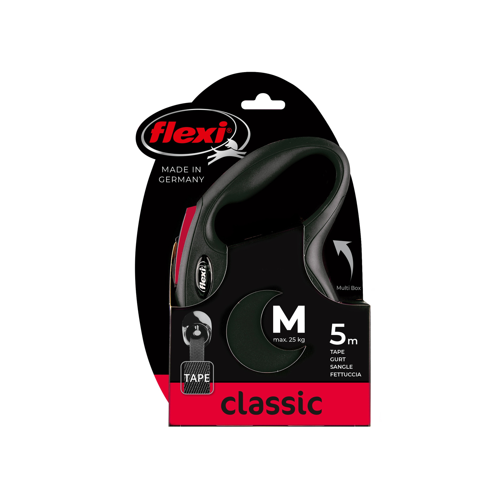 FLEXI Smycz automatyczna CLASSIC BLACK FIRE M taśma 5 m