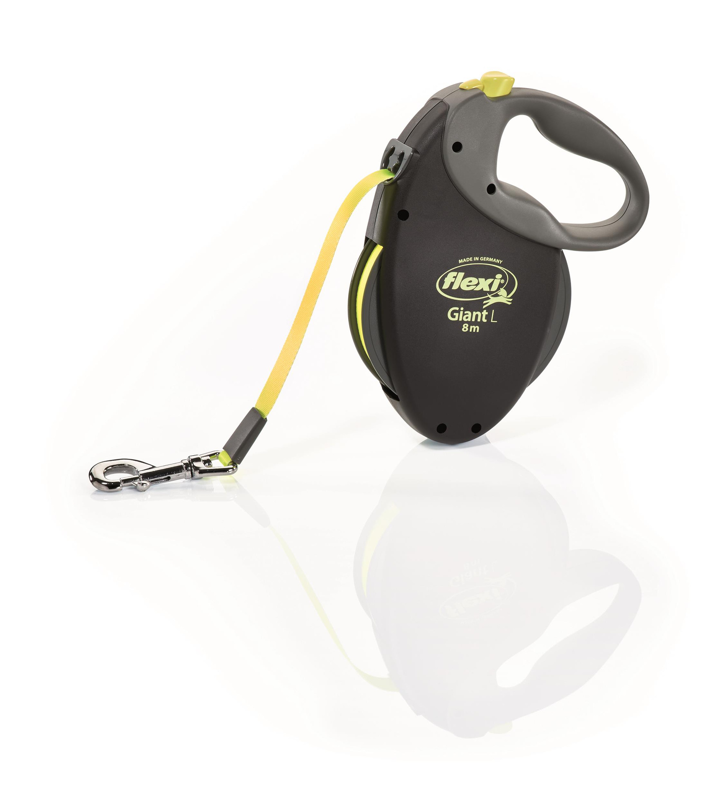 Smycz automatyczna FLEXI GIANT NEON taśma L 8m wyposażona w odblaskowe elementy (taśma, przyciski), zwiększa bezpieczeństwo podczas spacerów o zmroku i w nocy. Smycz odporna na zabrudzenia, dzięki specjalnemu mechanizmowi zwijania nie ciągnie się po ziemi. Smycz o długości aż 8 m spowoduje, że spacer z psem stanie się bardziej przyjemny. Przeznaczona dla psów i innych zwierząt o wadze 50 kg. Rączka smyczy wykonana jest z antyalergicznego materiału uniemożliwiającegowyślizgnięcie z dłoni. Smycz przeznaczona dla dużych porywczych psów.
