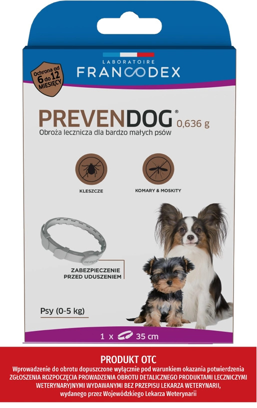 FRANCODEX PL Obroża na kleszcze PREVENDOG 35 cm dla psów do 5 kg - 1 szt