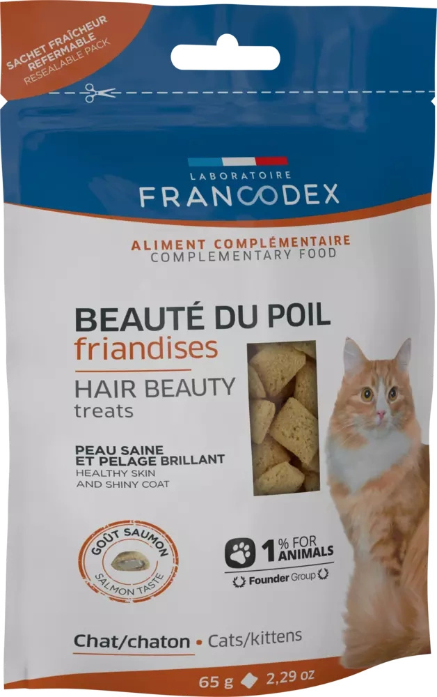 Francodex Przysmak dla kota - piękna sierść smak łososia 65 g