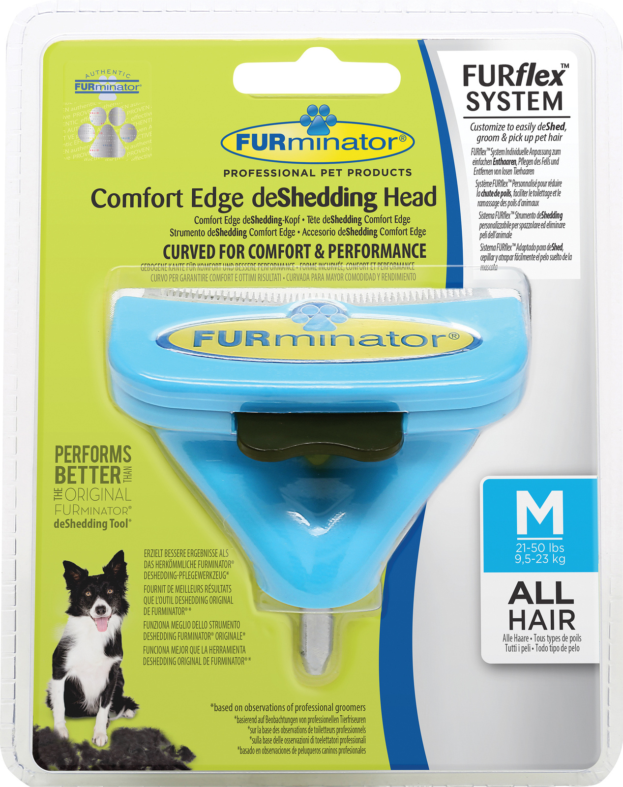 Główka FURflex przeznaczona jest do wyczesywania podszerstka dla psów ras średnich (o masie ciała między 9 - 23 kg) i pasuje do uniwersalnej, ergonomicznej rączki, dostępnej oddzielnie. Innowacyjne, wyprofilowane ostrze Comfort Edge ze stali nierdzewnej dopasowane jest do naturalnego kształtu ciała zwierzęcia. W bezpieczny sposób sięga przez warstwę włosa okrywowego, wyczesując podszerstek i martwy włos, nie powodując uszkodzeń skóry i sierści. Urządzenie przeznaczone jest do wszystkich długości sierści. Przycisk FURejector pozwala z łatwością usunąć sierść z narzędzia. Główki FURflex do wyczesywania podszerstka redukują linienie aż do 90% przy regularnym stosowaniu!
